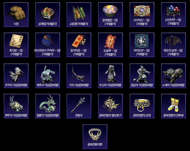 꿈상자에서는 다양한 아이템을 받을 수 있다 사천왕 장비라든가.. 식량이라든가..