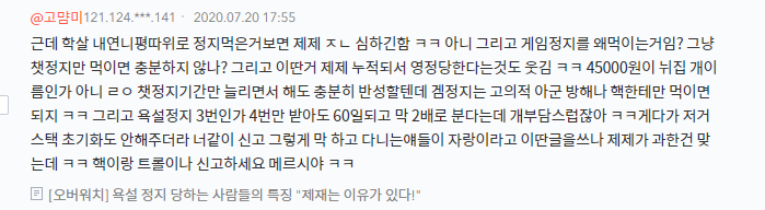"챗정지 기간만 늘리고해도 충분히 반성할텐데" 라네 ㅋㅋㅋ