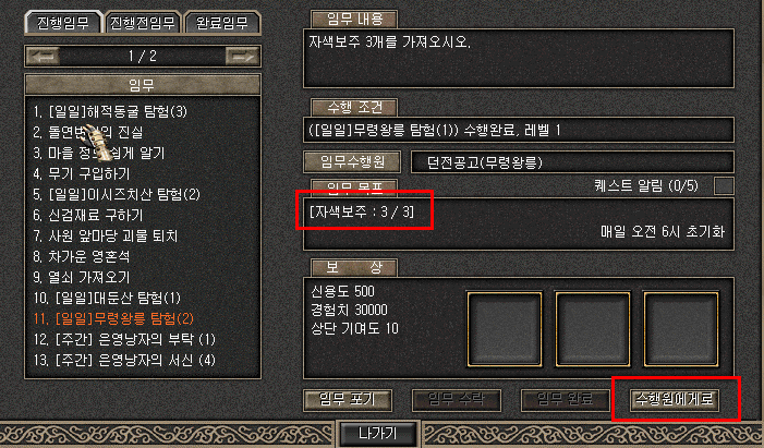 마을 근처 퀘스트도 이런식으로 미리 해놓으면